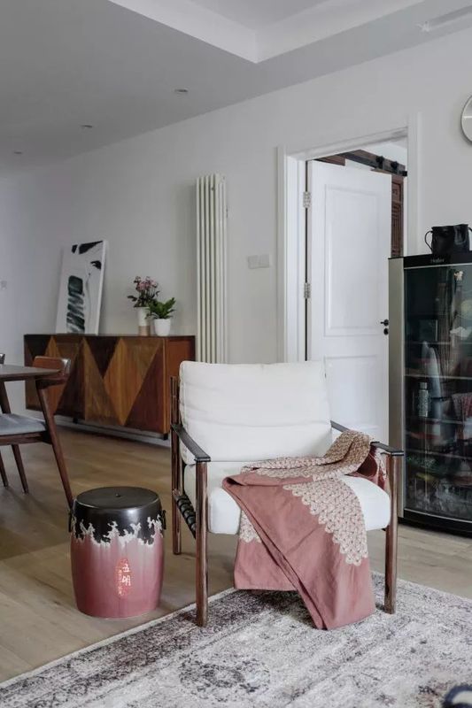 簡約的北歐風與新中式的混搭,一點都不覺得突兀,新中式的家具及裝飾,反而為北歐風增添了優(yōu)雅復古的味道。