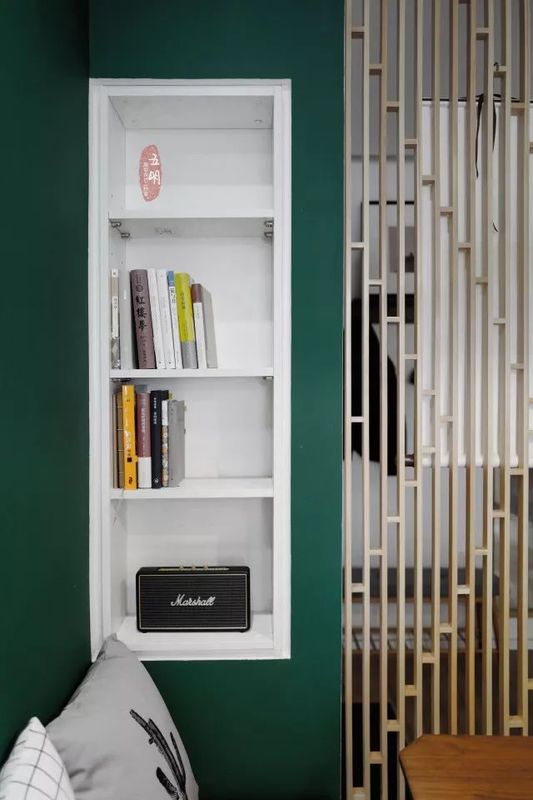 白色的吊燈晶瑩剔透,襯著墨綠色的背景墻,簡直像兩件藝術品,即使墻面不掛畫裝飾,
