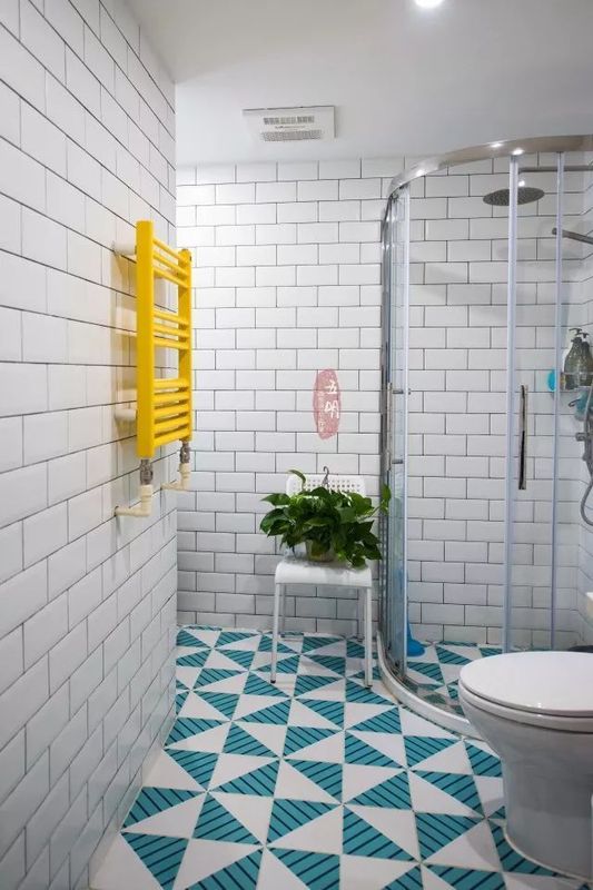 北歐風格的衛(wèi)生間設計,明黃色的暖氣片,整個空間都活潑了起來。