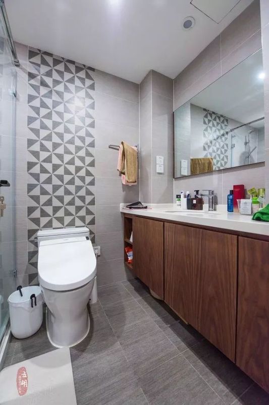 次衛(wèi)選擇了適合爸媽的灰色幾何磚,干凈好打理,還不失趣味性。