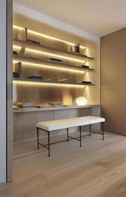 9.見光不見燈,例如廚房切菜位置、衣柜、展示柜、樓梯燈帶等位置的燈光設(shè)計最好使用內(nèi)嵌的設(shè)計,把燈帶都隱藏起來見光不見燈,除了能夠有更溫馨的效果還有讓燈光不刺眼。最開始就考慮進去可以免去后面裝修完后再使用充電的燈管這些煩惱。
