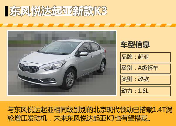 東風(fēng)悅達(dá)起亞現(xiàn)款K3搭載1.6L和1.8L自然吸氣發(fā)動機(jī),當(dāng)下小排量增壓化已經(jīng)成為一種趨勢,排量降低的同時還可獲得強(qiáng)勁的動力輸出,北京現(xiàn)代全新A級轎車領(lǐng)動于11月20日開幕的廣州車展中正式發(fā)布,新車率先搭載現(xiàn)代起亞集團(tuán)此前發(fā)布的1.4T渦輪增壓發(fā)動機(jī),東風(fēng)悅達(dá)起亞K3與北京現(xiàn)代領(lǐng)動同級,未來該車也有望搭載1.4T增壓發(fā)動機(jī)。