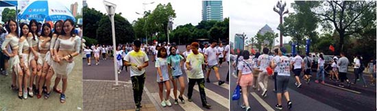 據(jù)常德嘉寶莉經(jīng)銷商朱總介紹,近年來,“彩色跑”在國內(nèi)越來越流行,人們對于活動的參與度也越來越高。活動正是參照了時下最流行的彩跑形式,通過報名方式向市民征集,今天參加活動的有2700人左右,年輕人居多,從市體育中心出發(fā),跑至柳葉湖指定地點,全程約5公里。