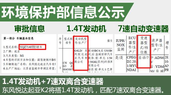 近日,網(wǎng)通社從國家環(huán)境保護(hù)部了解到:東風(fēng)悅達(dá)起亞型號為YQZ7140TE5的車型將搭載1.4T渦輪增壓發(fā)動機(jī),匹配7速雙離合變速器。此前銳歐型號是YQZ7140,不過現(xiàn)已停產(chǎn),其換代車型K2隨后上市,K2上市至今已有5年時間,因此YQZ7140TE5對應(yīng)的車型有望是全新一代K2。全新的1.4T發(fā)動機(jī)動力輸出大幅超越現(xiàn)款K2搭載的1.6升自然吸氣發(fā)動機(jī),換搭1.4T后全新K2在同級別車型中的競爭力將得到大幅提升。