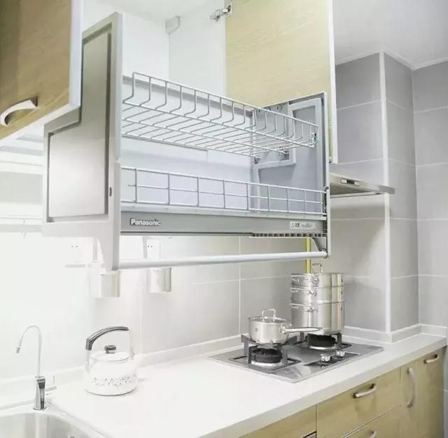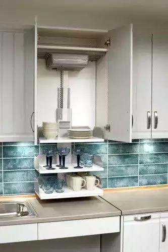 上面這種升降拉籃更適合放不常用的物品,而下面這種隱藏在壁柜里的垂直下拉式,抽拉速度更快,非常適合安裝在備菜區(qū)上方的壁柜,放一些常用的調(diào)味料等等物品。