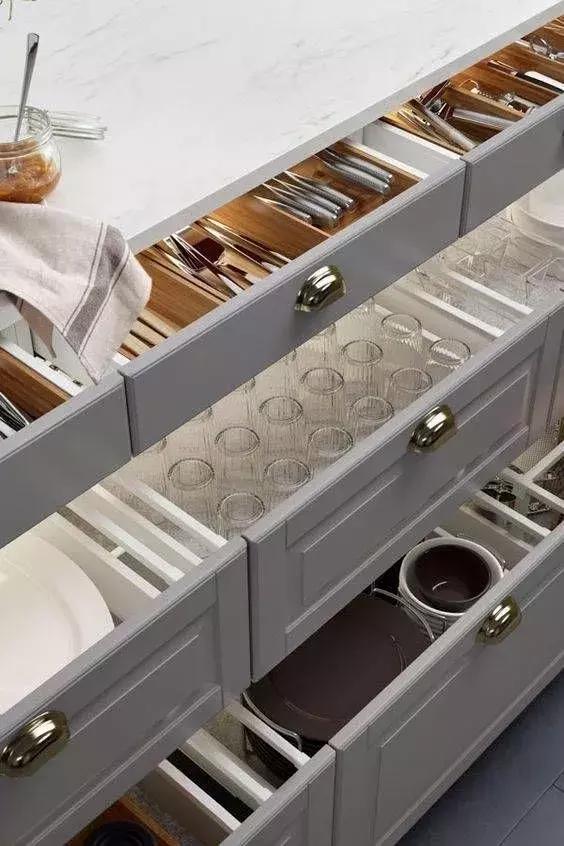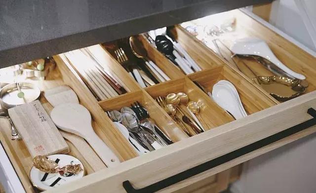 想用起來(lái)更順心的話,在抽屜里面做好分隔,不僅能防止東西在抽屜里滾來(lái)滾去,而且物品整齊放置,一目了然,要拿什么立刻就能找到,再也不怕出現(xiàn)菜都燒焦了還沒(méi)找到鹽的情況。