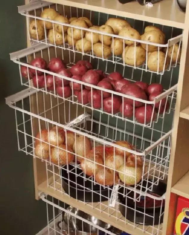 還有一種把整個(gè)壁柜定制成垂直下拉拉籃的方案,整個(gè)櫥柜的空間都能利用起來(lái)。