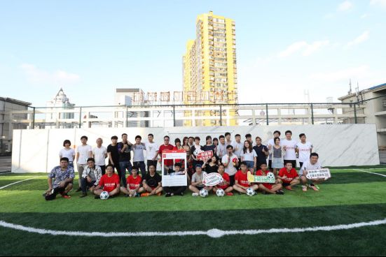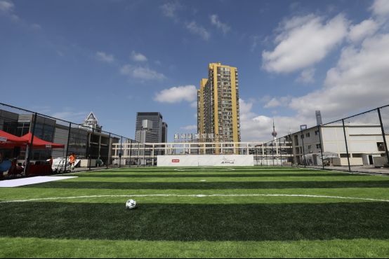 比賽當天,正值國際奧林匹克日,雖然上海是陣雨天氣,但絲毫沒有影響球迷參與比賽的熱情。不大的網(wǎng)紅球場,卻有很多通過參加互動游戲獲得入場券的球迷到場。