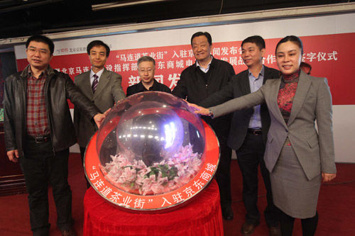 人民網(wǎng)北京3月23日電\u00A0 23日,馬連道建設(shè)指揮部、廣外街道辦事處同北京京東世紀(jì)貿(mào)易有限公司,共同在北京馬連道召開“馬連道茶業(yè)街”入駐京東商城新聞發(fā)布會暨馬連道建設(shè)指揮部與京東商城商務(wù)發(fā)展戰(zhàn)略合作協(xié)議簽字儀式,來自馬連道茶葉街的安徽省六安瓜片茶業(yè)股份有限公司、更香茶葉公司、猴坑茶業(yè)、北京二商京華茶業(yè)有限公司、北京天月茗茶有限公司、御茶園、貴士茗茶、北京藝鴻齋茶莊、品品香茶業(yè)、聞品香茶行等十家茶企業(yè)參加了此次發(fā)布會。
