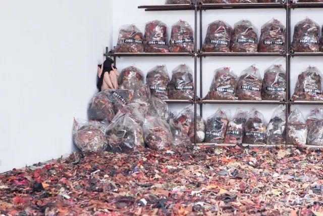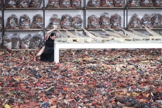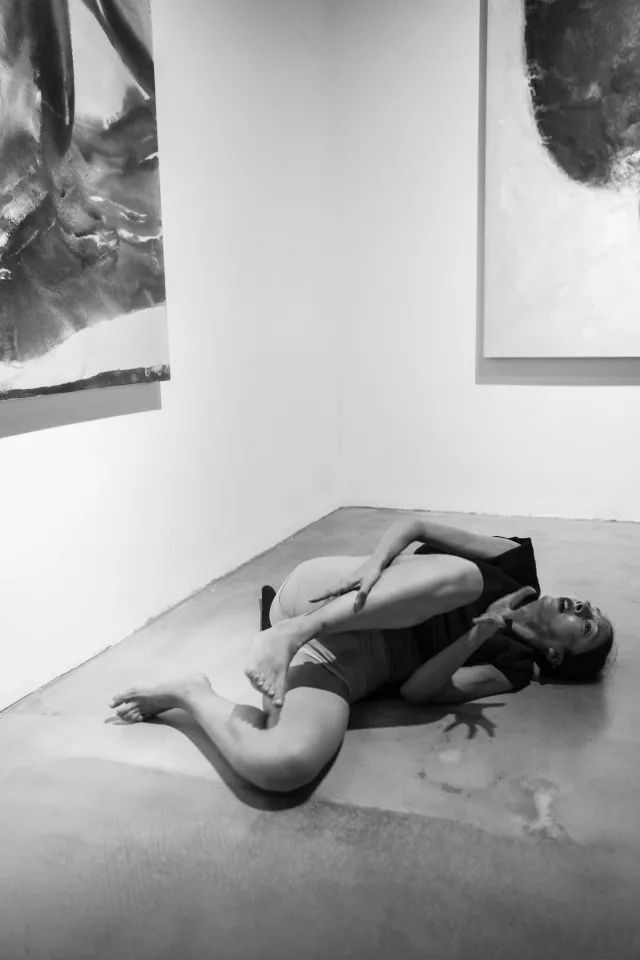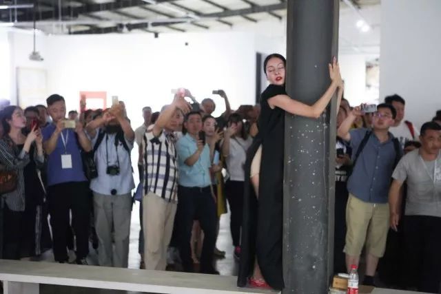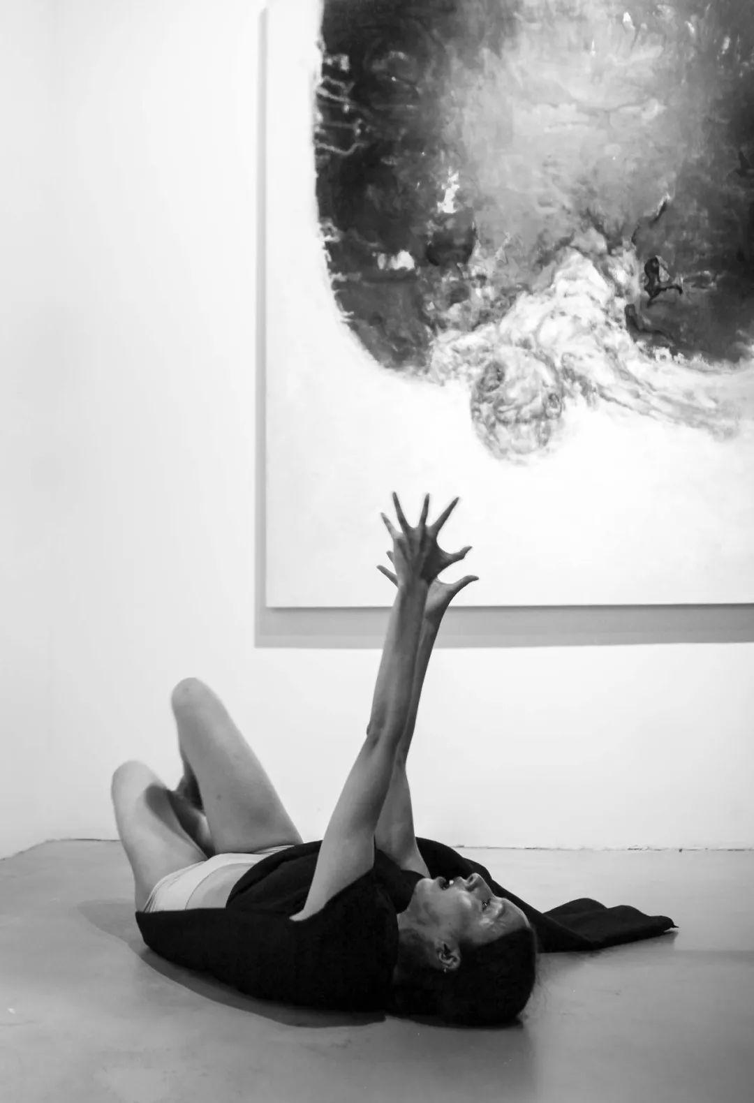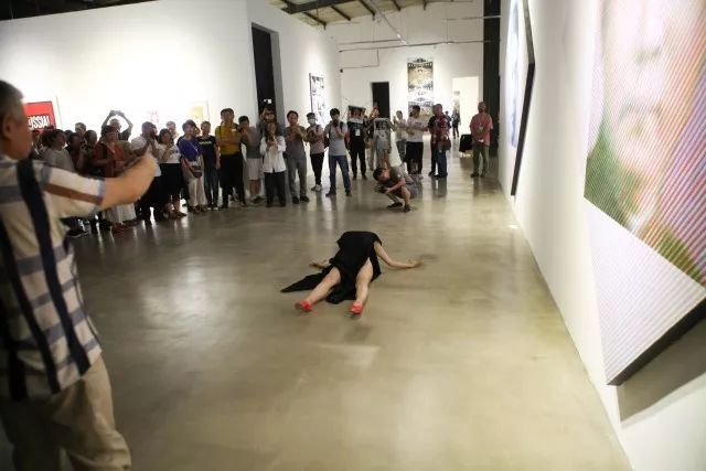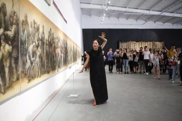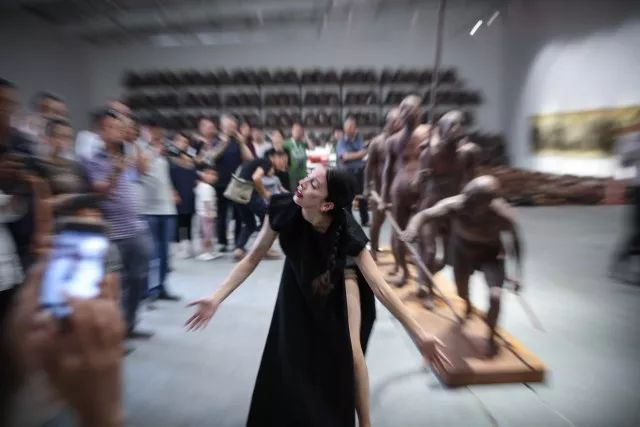 來(lái)自英國(guó)的舞蹈藝術(shù)家艾美,帶來(lái)一場(chǎng)動(dòng)人心魄的現(xiàn)代舞表演,將開幕式推向高潮。隨著音樂的起伏,從場(chǎng)外到場(chǎng)內(nèi),舞蹈家在一件件當(dāng)代作品之間穿梭,似乎激活了每一件作品,并將整個(gè)展覽在動(dòng)態(tài)上融為一體。