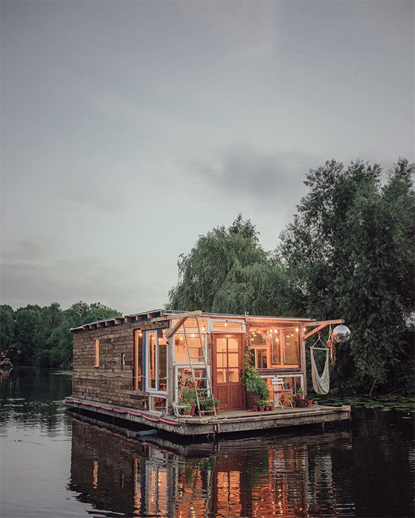 既然說(shuō)到船屋,就不能不提最近火爆網(wǎng)絡(luò)的,由一對(duì)來(lái)自西雅圖的建筑師夫婦共同設(shè)計(jì)的作品。這座停靠在西雅圖聯(lián)合湖畔、代號(hào)為“H號(hào)游艇”的水上浮動(dòng)房屋,本質(zhì)為一座浮島——位于甲板下方、作為船屋地基而存在的“浮島”,使用可回收塑料材料制成,目的是為了代替土壤幫助植物根系生長(zhǎng)、延伸至水中,并且通過(guò)培養(yǎng)阻止藻類生長(zhǎng)的特殊菌群,創(chuàng)造適合魚類棲息的全新海岸線。據(jù)主人家透露,在“H號(hào)游艇”地下室的一個(gè)玻璃窗里,他們不僅可以觀賞到各類水生生物游曳的美妙畫面,還能切實(shí)地感受到船屋自身對(duì)于周邊環(huán)境漸進(jìn)式的改善。