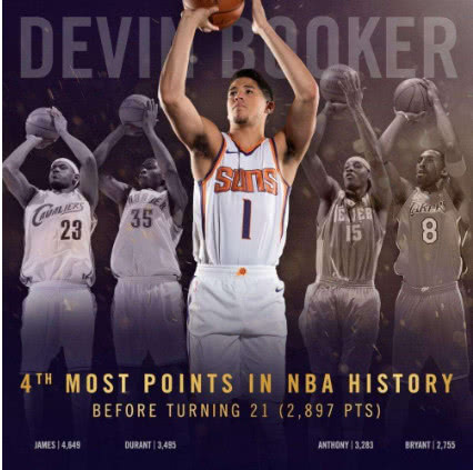 并且,布克在他21歲前一共拿到2897分,在NBA歷史上僅有5人能夠在他21歲前拿到2700分,這5個人分別是詹姆斯(4649分)、杜蘭特(3495分)、安東尼(3283分)、布克(2897分)和科比(2755分)。在這份榜單中,布克已經(jīng)成功擠進了巨星行列,甚至超越了科比。