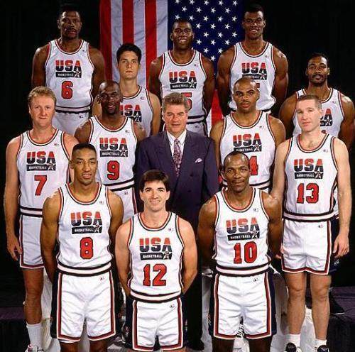 這一批人,除了一個(gè)大學(xué)生以外,基本上包含了NBA里各個(gè)位置上的最頂級的球員,那時(shí)候的最佳陣容一陣全都是這來自這12人:喬丹,德雷克斯勒,克里斯-穆林,卡爾-馬龍和大衛(wèi)-羅賓遜,也就是說NBA最好的5個(gè)人都在這里面了。最佳陣容二陣也有四個(gè)來自這支隊(duì)伍,分別是尤因,巴克利,斯托克頓和皮蓬,同樣的他們的防守也非常強(qiáng)大,喬丹,皮蓬和大衛(wèi)-羅賓遜是最佳防守陣容一陣的,尤因和斯托克頓是二陣容的。