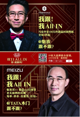 馬克華菲公司CEO楊坤田先生表示“今年,在營銷創(chuàng)意方面,除了邀約12星座女神,男神吳克群,全球潮人Nick Wooster來助陣之外,同時與阿里媽媽聯(lián)盟了18家不同類目的TOP級商家,做了ALL IN項目。在雙十一活動中,除了銷量排名之外,我們更加看中消費者的用戶體驗。”