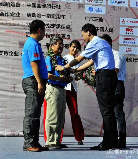 發(fā)車儀式現(xiàn)場(chǎng),陜西省新聞出版廣電局黨組書(shū)記、局長(zhǎng)劉斌代表主辦單位致辭。中共西安市委常委、宣傳部部長(zhǎng)吳鍵,西安市人民政府副秘書(shū)長(zhǎng)周愛(ài)全為著名文化學(xué)者肖云儒、張騫后人張利君兩位嘉賓代表折柳送行。陜西廣播電視臺(tái)臺(tái)長(zhǎng)、黨委書(shū)記王廣群為車隊(duì)揭幕,中央文史館書(shū)畫(huà)院院長(zhǎng)、中國(guó)畫(huà)駱駝第一人馬振聲現(xiàn)場(chǎng)畫(huà)一幅具有濃郁西域風(fēng)情的《沙漠駱駝圖》助力絲路啟程;顒(dòng)最后,陜西省委常委、宣傳部部長(zhǎng)景俊海發(fā)表了熱情洋溢的講話,并宣布“絲綢之路萬(wàn)里行”活動(dòng)正式發(fā)車。