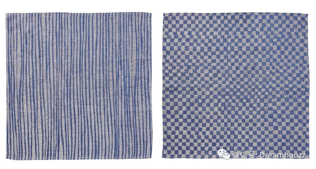 雖然是機器縫制印染,但是圖案是手工繪制,再有婆羅門藍加持,搭配莫蘭迪色系的不規(guī)則圓盤,手工制品的寓意已經(jīng)非常明確了。如果還想要再wabi-sabi點兒,就在餐桌加一只英德川赤陶花瓶吧。