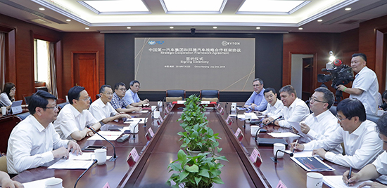 拜騰、中國一汽雙方代表以及南京市和開發(fā)區(qū)領(lǐng)導(dǎo)會談