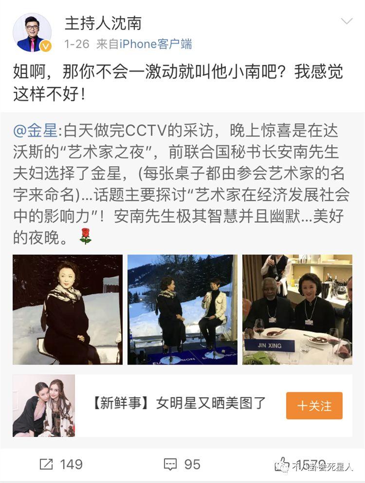 雖然中間一度沒有合作,這都不影響兩人之間的關(guān)系。金星和聯(lián)合國秘書長安南吃飯,沈南調(diào)侃“姐,你可別一激動就喊小南,這樣可不好!”
