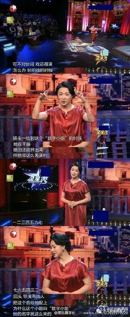 金星在節(jié)目里吐槽這位“數(shù)字小姐”,拍戲不好好拍,讓生活助理去和別人對臺詞,演戲的時候念數(shù)字。