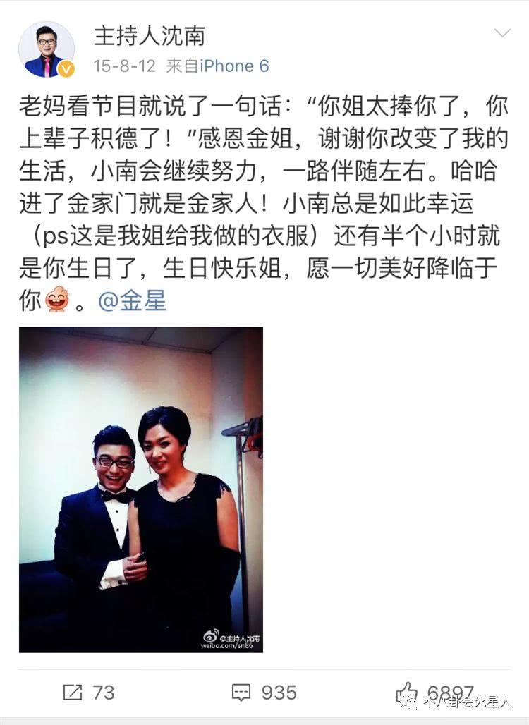 嘉玲姐是所有嘉賓中第一個去和沈南握手的。不得不說,我嘉玲姐就是有眼力。《金星秀》的成功,除去金星老師的優(yōu)秀的表演,剩下的一大半的功勞可以說都要?dú)w功于優(yōu)秀的臺本,而這些臺本基本都是沈南親自寫的。