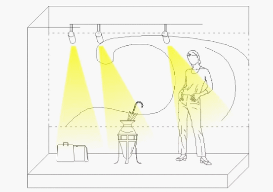 重點(diǎn)照明是店鋪照明里最重要的方面,不僅要求美感,同時(shí)要突出商品的特點(diǎn)。