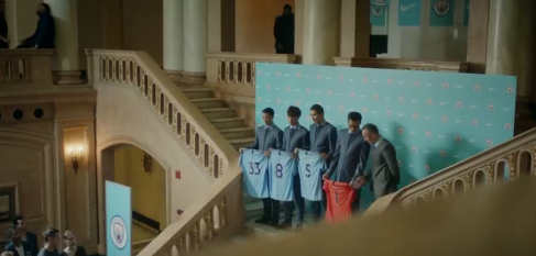 接著,畫面里出現(xiàn)曼城俱樂部簽下了四名中國(guó)球員的場(chǎng)景。不過,他們?cè)谛侣劙l(fā)布會(huì)的現(xiàn)場(chǎng)被告知每個(gè)歐洲俱樂部只能簽約三名中國(guó)球員。