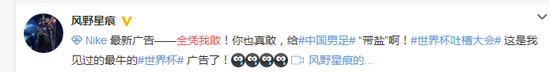 耐克在微博上寫道:“不是所有人都像他們一樣,敢想、敢踢,敢主宰明天。”
