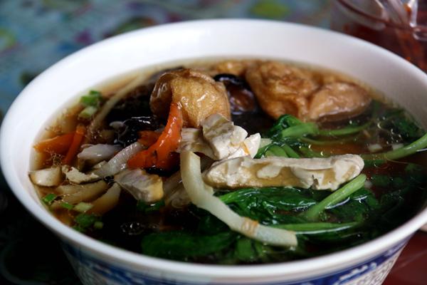 蘇式澆頭面也不容錯(cuò)過(guò),各式各樣的澆頭讓人挑花了眼。若是覺得早餐吃葷面有些油膩,素交面會(huì)是一個(gè)很好的選擇。素澆頭包含豆干、青菜、油面筋、筍干、胡蘿卜絲好幾樣食材,味道鮮甜,顏色也搭配得賞心悅目。