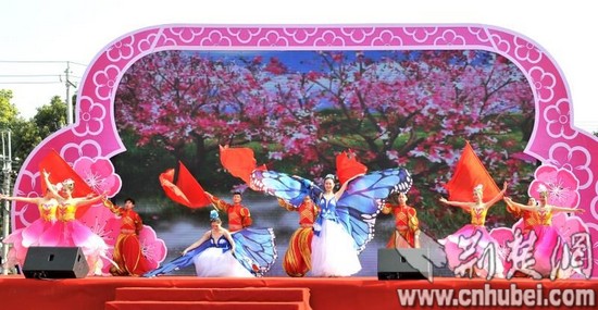 這是一部桃花人民自導(dǎo)自演的宣傳大片。開(kāi)幕式上,演員們唱響《在那桃花盛開(kāi)的地方》,舞出《桃花山春天的恰恰》,用驚險(xiǎn)的雜技演繹《桃李爭(zhēng)艷》,在石首名歌《念紅軍》的悠揚(yáng)旋律中把思緒帶回到桃花山這片紅色熱土的往昔崢嶸歲月,感受紅色旅游小鎮(zhèn)的非凡魅力。