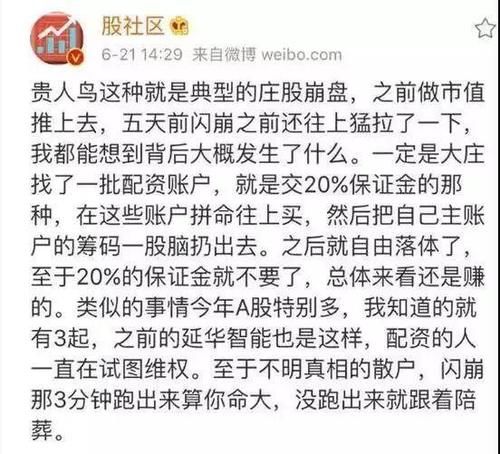 就在昨天,有微博博主表示,在貴人鳥閃崩的背后,是市場炒客進(jìn)行的爆倉式操盤。