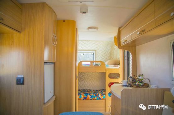 一些比較大的拖掛房車可以達(dá)到7米以上,樂途這款房車的尺寸則為5445*2335*2646mm。雖然在拖掛房車?yán)锩娉叽绮凰愦螅桥c自行式房車相比,空間也算不逞多讓了。我們先來看一下樂途的空間布局,車頭一個(gè)上下鋪,車尾一套卡座沙發(fā)可秒變雙人床,車廂中部是廚房區(qū)、衛(wèi)生間、儲(chǔ)物柜等生活區(qū)。