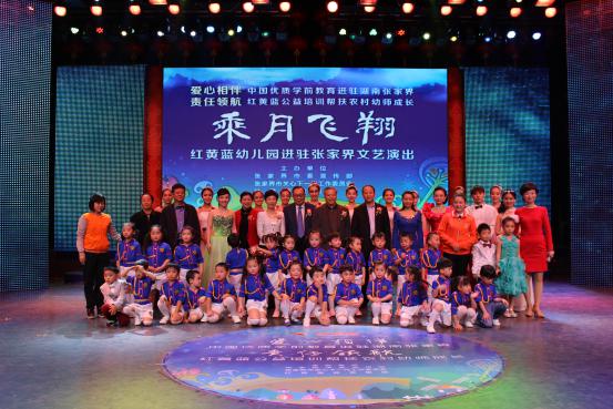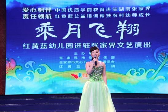 當(dāng)天“乘月飛翔”文藝演出,由張家界市電視臺著名主持人汪洋和紅黃藍(lán)幼兒園兩位雙語小主持人共同主持,星光大道總冠軍劉賽也親臨現(xiàn)場。劉賽出生在軍人家庭,父親是軍人,母親是幼師,雖然小時候就患有眼疾,但父母的言傳身教讓劉賽擁有了不服輸?shù)男愿窈头e極樂觀的精神。由于母親是幼兒教師,劉賽對幼教事業(yè)也有別樣的情懷。劉賽心系家鄉(xiāng),關(guān)心學(xué)前教育,熱心公益活動。在文藝演出中,劉賽和紅黃藍(lán)藝術(shù)團(tuán)的老師、紅黃藍(lán)幼兒園的孩子們共同唱響最美的旋律,這只從張家界桑植飛出來的百靈鳥演唱了《新幸福拍手歌》和《媽媽》。