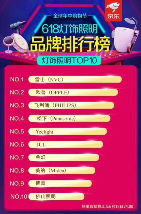 京東618燈飾照明品牌排行榜