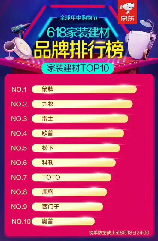 京東618家裝建材品牌排行榜