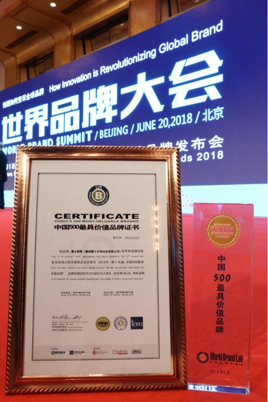 繼2018年6月8日雷士集團以總營收103.7315億元奪得照明行業(yè)“百強榜”,成為國內(nèi)LED照明行業(yè)首家百億級企業(yè)之后,雷士照明以照明行業(yè)榜首榮獲本次中國\u00A0500\u00A0最具價值品牌更是實力的彰顯。
