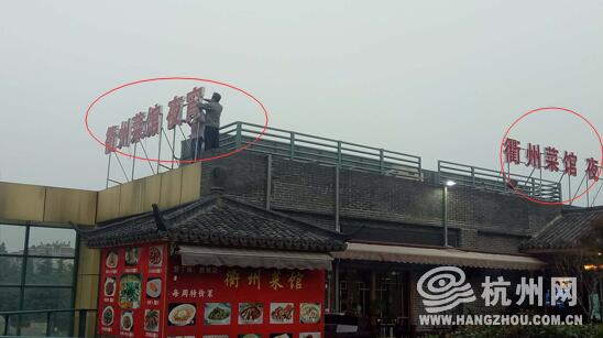 原來,西湖區(qū)城管局文新中隊近日在開展建筑物屋頂招牌集中整治工作,對超出建筑物屋頂、裙樓屋頂或不符要求、破壞天際線和城市風貌的廣告招牌予以清理,該菜館也在整治清單范圍內(nèi)。