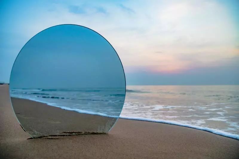 單向空間“鏡中之海·詩歌之夜”的聯(lián)合主辦方阿那亞社區(qū)在海邊設(shè)置的鏡面裝置