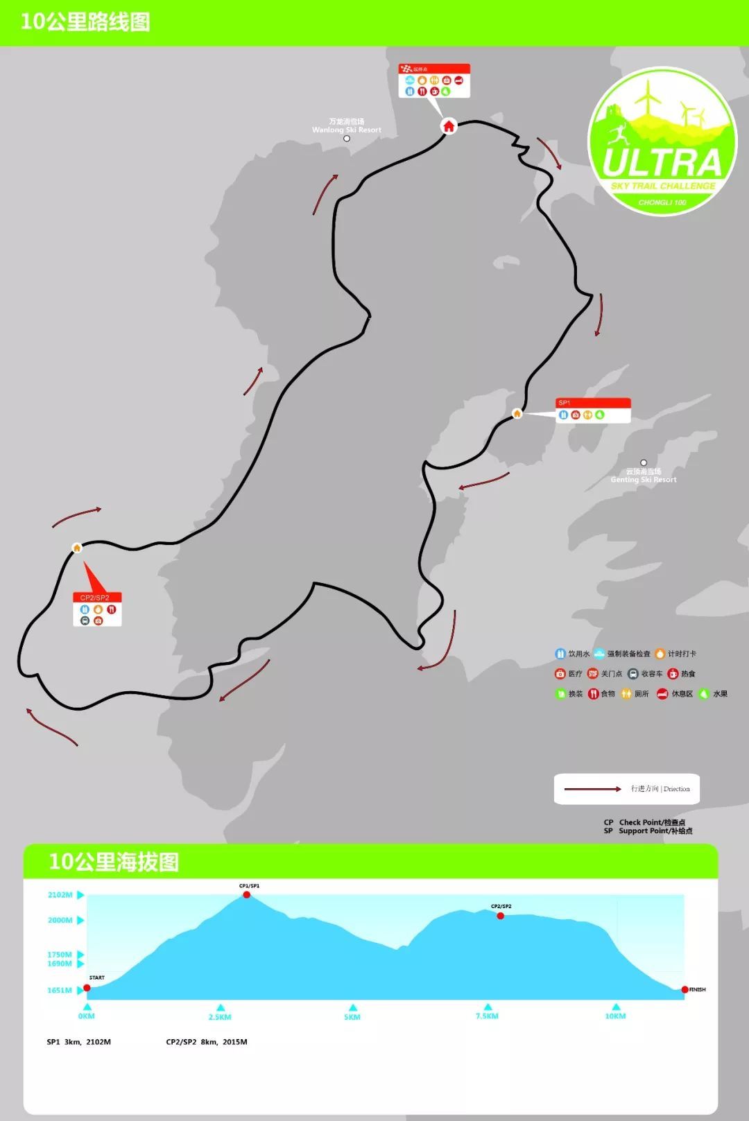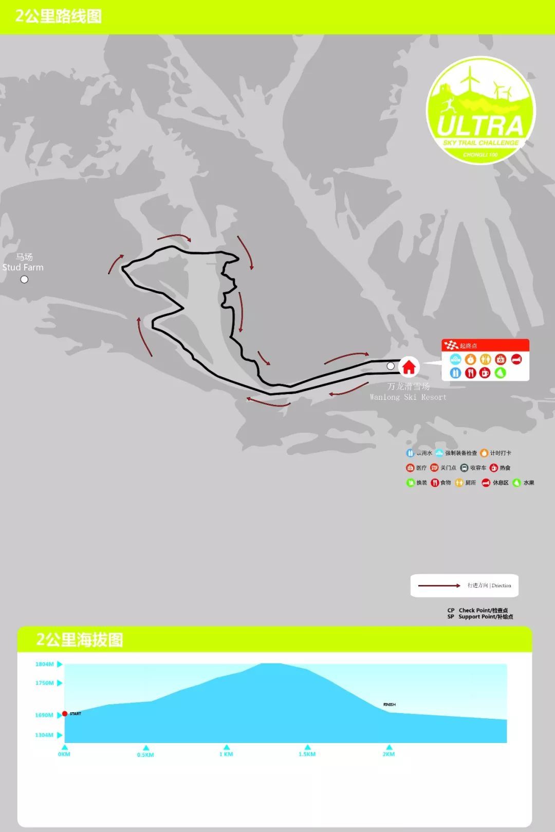 賽道特點:出發(fā)是一段上坡,沿雪道碎石道到達山頂木屋CP1,之后賽段穿過高山草甸,到萬龍雪場八號纜車補給站沿雪道跑回終點,較為輕松。