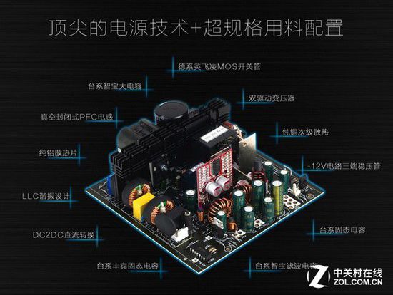 在細節(jié)元件上,如超耐久長壽命軍工級的Capxon豐賓105℃固態(tài)電容,高品質(zhì)臺系智寶TEAPO大電容,德系英飛凌核心MOS開關(guān)管,散熱最高級別的99%純銅散熱片,讓電源的整體電氣效能達至一個新的高度,一般的普通電源難以企及。