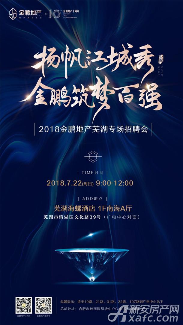 核心提示:繼7月3日,金鵬地產成功摘得蕪湖鳩江區(qū)1808號寶地,金鵬進駐蕪湖的首批拓疆者戰(zhàn)隊已正式啟動招募。