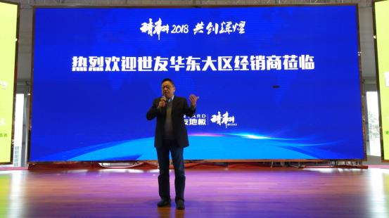 會議伊始,在熱烈的掌聲中,世友地板董事長倪方榮上臺致辭:世友地板在2017年整體環(huán)境錯綜復(fù)雜的情況下,成績斐然,圓滿完成剛性銷售目標(biāo),并深刻闡述世友只專注于地板,專注地板品質(zhì),打造百年企業(yè)的概念。
