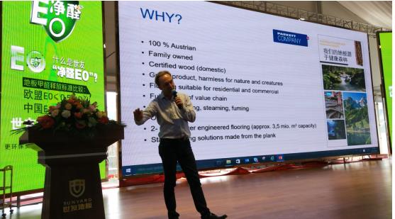 此次會議重頭戲,2018春季新品發(fā)布會拉開帷幕。世友地板正式攜手奧地利RAPKETT公司,發(fā)布?xì)W洲原裝進(jìn)口地板及簡愛系列新品上市。