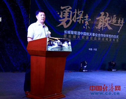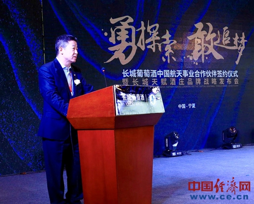 中糧酒業(yè)有限公司董事長(zhǎng)王浩代表長(zhǎng)城人感謝了寧夏政府及行業(yè)內(nèi)領(lǐng)導(dǎo)的肯定,他強(qiáng)調(diào):“長(zhǎng)城葡萄酒的戰(zhàn)略定位是‘中國(guó)長(zhǎng)城,紅色國(guó)酒’,作為唯一真正能代表中國(guó)的民族葡萄酒品牌,中國(guó)長(zhǎng)城葡萄酒伴隨改革開(kāi)放榮耀40年,以國(guó)酒品質(zhì)多次登上國(guó)宴舞臺(tái)。長(zhǎng)城葡萄酒正式成為中國(guó)航天事業(yè)的合作伙伴,這對(duì)于長(zhǎng)城來(lái)說(shuō)是一個(gè)非常重要的契機(jī),長(zhǎng)城要大力弘揚(yáng)航天精神,做好“紅色國(guó)酒”,為光榮的航天事業(yè)增光添彩。更充分地發(fā)揚(yáng)長(zhǎng)城的紅色基因優(yōu)勢(shì),奮發(fā)圖強(qiáng)、攻堅(jiān)克難,堅(jiān)持戰(zhàn)略引領(lǐng)發(fā)展,創(chuàng)新驅(qū)動(dòng)成長(zhǎng),要讓“紅色國(guó)酒”逐步崛起于世界葡萄酒之林,就像中國(guó)航天崛起于世界民族之林一樣,共同助力祖國(guó)的偉大復(fù)興。”