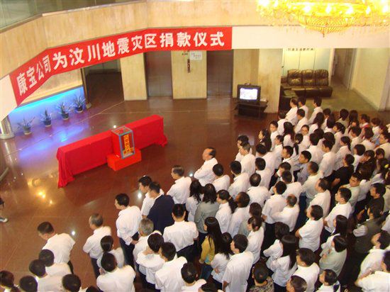 ▲2008年,康寶公司領(lǐng)導(dǎo)和員工踴躍為四川汶川地震災(zāi)區(qū)捐款捐物
