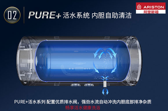 阿里斯頓J4電熱水器配備PURE+活水系統(tǒng),實現(xiàn)內(nèi)膽自助清潔功能,在電熱水器底部配置優(yōu)質(zhì)排水閥,在需要清洗內(nèi)膽時,只需打開排水閥,內(nèi)膽里會形成強勁水流,將內(nèi)膽底部的雜質(zhì)沉積物徹底排出。用戶可以根據(jù)自家的水質(zhì)狀況安排清洗周期,操作極為簡便,徹底排除健康隱患。