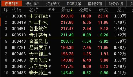 值得關(guān)注的是,昨天收盤,中文在線就已經(jīng)悄然超越長期霸占兩市第一高價(jià)股位置的貴州茅臺。而截止今日發(fā)稿,已經(jīng)有三只股票價(jià)格高于貴州茅臺,分別為中文在線、創(chuàng)業(yè)軟件和浩豐科技,股價(jià)分別為243.10元、217.99元和216.22元,而貴州茅臺報(bào)價(jià)211.41元。