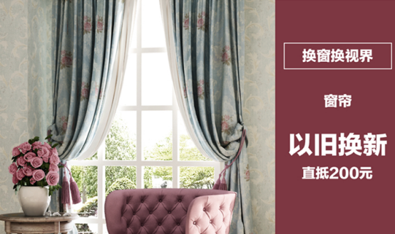1、窗簾直降12%的基礎(chǔ)上再加“換窗,換視界”以舊換新活動(dòng),舊簾以200元/窗回收。