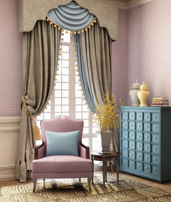 形態(tài)部分:窗簾的風(fēng)格要與墻紙的風(fēng)格大體相配,如果墻紙是美式鄉(xiāng)村風(fēng)格,窗簾就不能選個(gè)中式風(fēng)格。如果說墻紙選擇了帶有小花紋的款式(例如田園風(fēng),歐洲宮廷風(fēng)),那么載選擇窗簾的時(shí)候,不建議選擇帶小碎花紋的紗簾和布簾了。否則會(huì)顯得房間不夠大方,穩(wěn)重,而應(yīng)選擇素色或者略帶豎形條紋的窗簾。