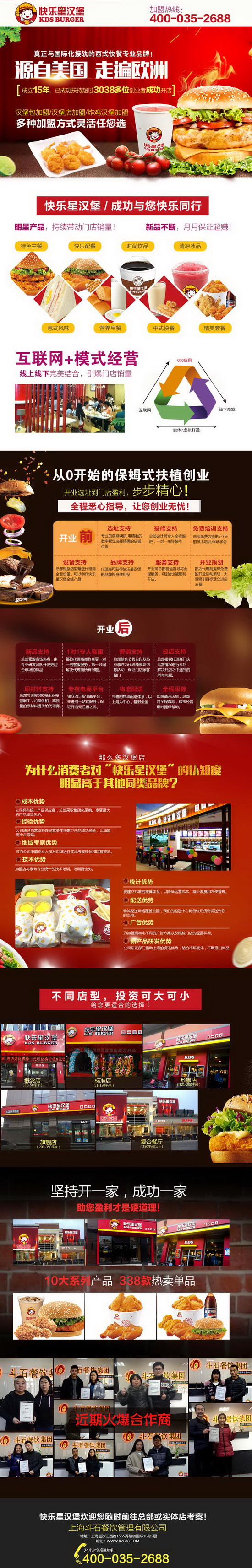 快樂星漢堡(KDS BURGER)品牌起源于2002年,憑借數(shù)年來的穩(wěn)扎穩(wěn)打、精益求精,獲得了諸多榮譽(yù)和加盟商、消費(fèi)者的口碑?鞓沸且悦朗礁咂焚|(zhì)的漢堡為賣點(diǎn),主要經(jīng)營的產(chǎn)品有漢堡、炸雞、雞肉卷、薯?xiàng)l、蛋撻、冰淇淋、奶昔、圣代、果汁、奶茶等市場流行的將近50種系列西式餐飲美食。其中明星產(chǎn)品為快樂雞腿堡、黃金脆皮雞、招牌奶茶、脆皮手槍腿等,每月定期還有新品上市。快樂星漢堡品牌時(shí)刻走在了西式餐飲加盟的前線,漸漸成為行業(yè)的領(lǐng)軍品牌。