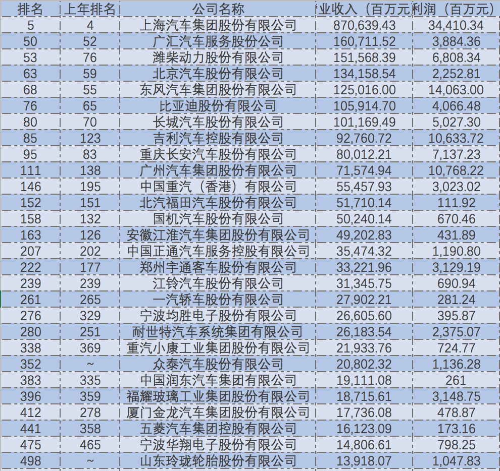 北汽福田由去年的151位微降至152位,營業(yè)收入510億元。江鈴汽車的名次與去年持平,依然排在第239位,營業(yè)收入三十一億元。
